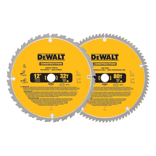DEWALT 12-Inch Miter Saw Blade, Crosscutting, Tungsten Carbide, 80-Tooth, 2-Pack (DW3128P5) : Everything Else
