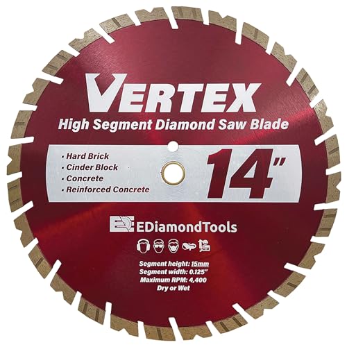 - MULTIPURPOSE – 14" blade designed to cut hard/reinforced concrete, hard paver brick, refractory brick