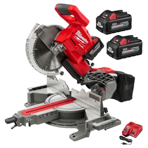 - What’s Included (1) M18 FUEL Dual Bevel Sliding Compound Miter Saw (2734-20), (2) M18 REDLITHIUM HIGH DEMAND 9.0 Battery Pack (48-11-1890), (1) M18 & M12 Rapid Charger (48-59-1808), (1) Blade Wrench, (1) Carbide Tipped Blade, (1) Clamp, (1) Dust Bag